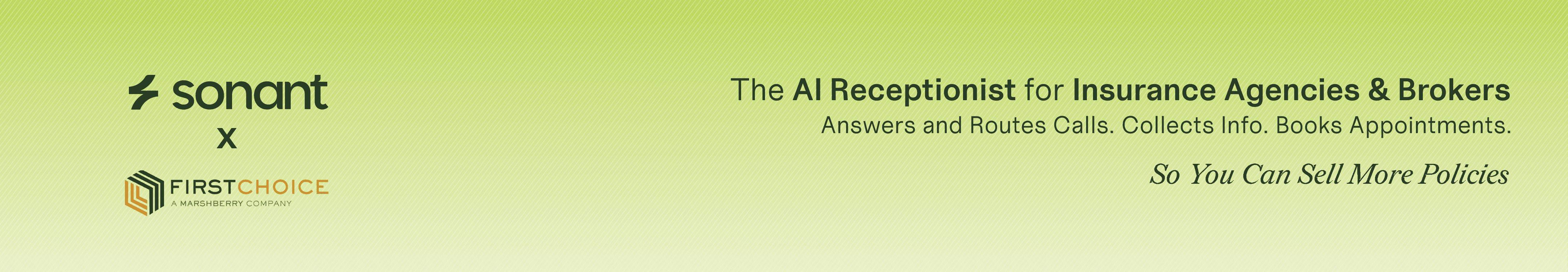FirstChoice and Sonant partner to bring insurance agencies a complete AI receptionist solution designed to streamline operations and elevate the customer experience. Here’s what you get: